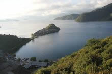 摩梭洛洼部落村寨临湖的半岛山包。建有望海亭一座。登上洛洼堡,左看“草海”绿波翠,右看“亮海”碧浪连天,泸沽湖秀色尽收眼底。